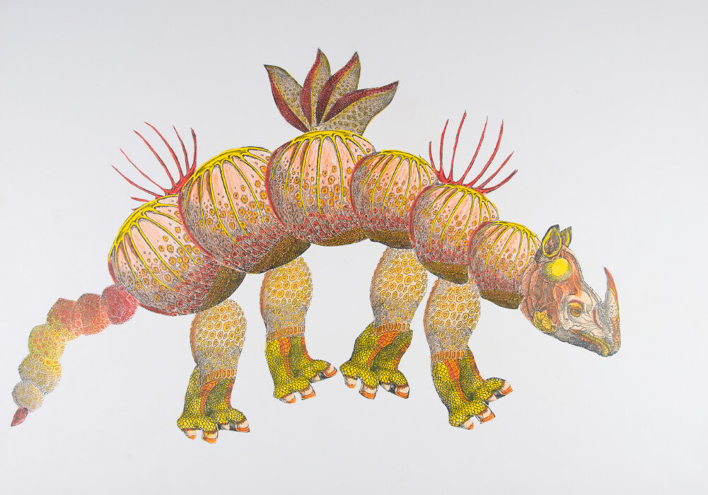 Collage aus Schwarz-Weiß-Fotokopien und Farbstiften