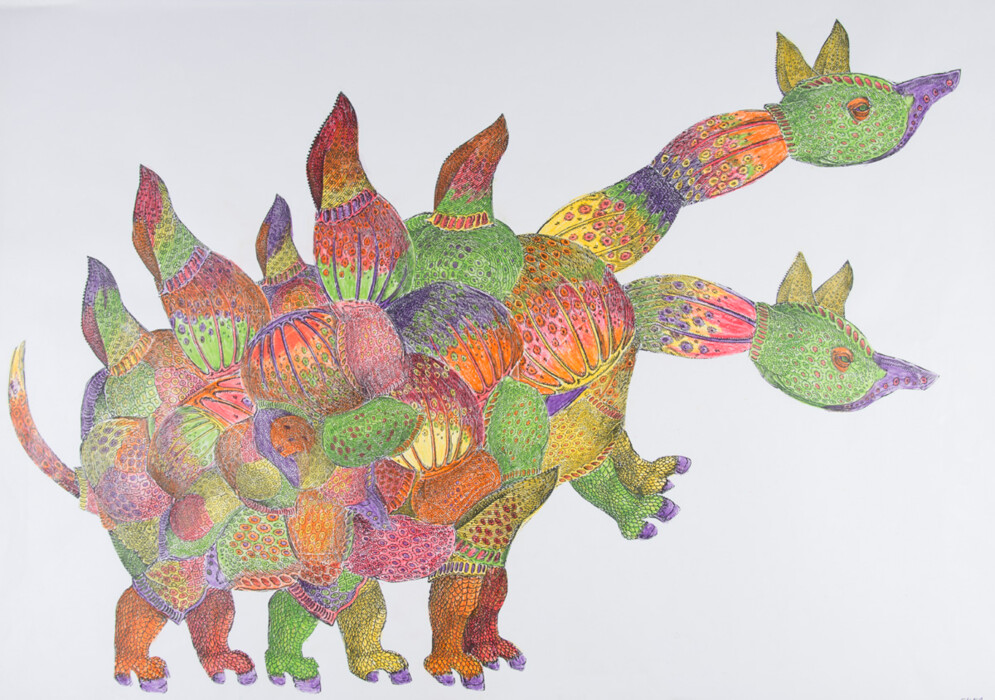 Collage aus Schwarz-Weiß-Fotokopien und Farbstiften