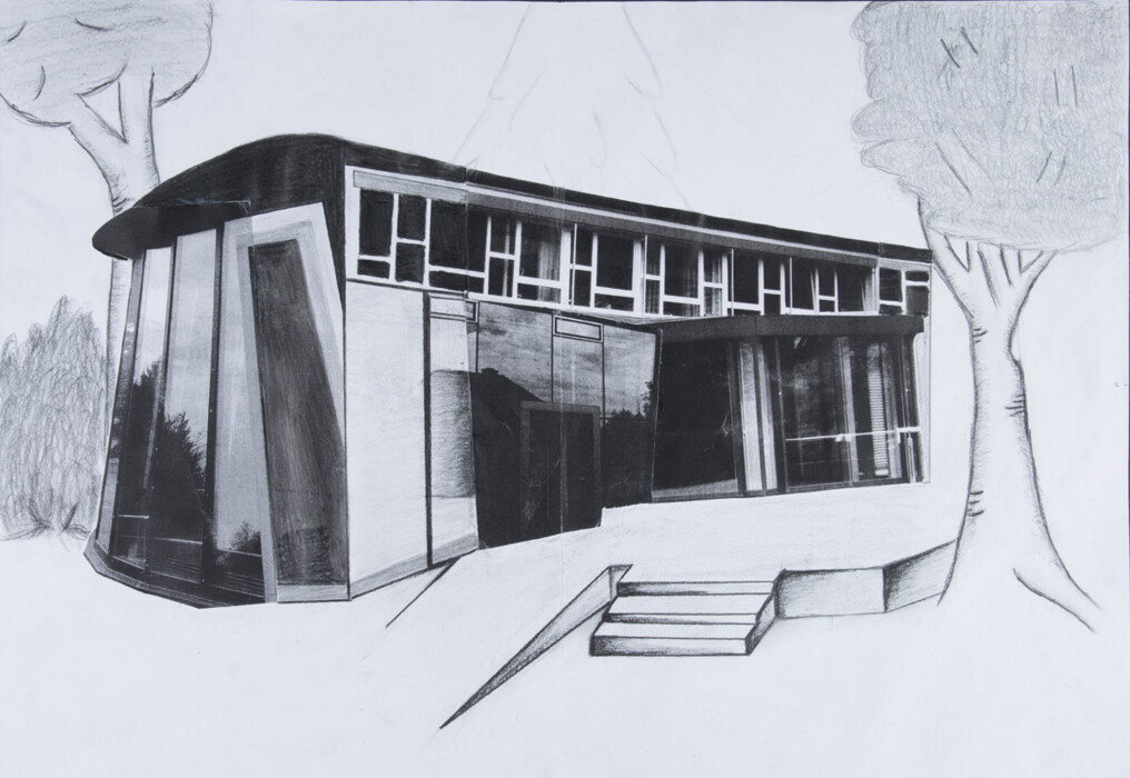 Collage aus Schwarz-Weiß-Fotokopien und Zeichnung
