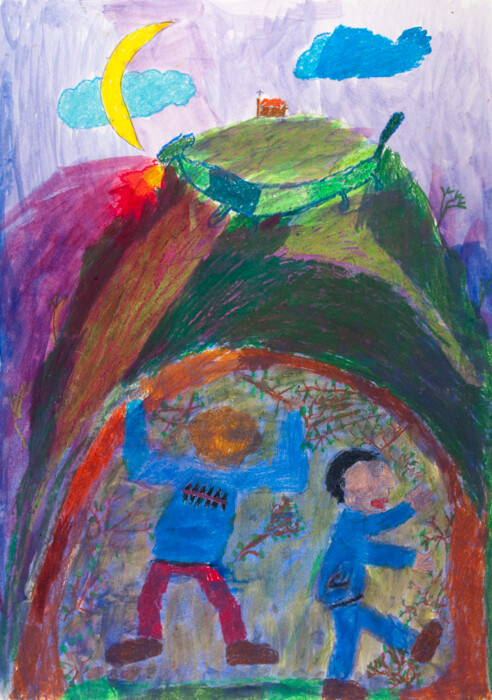 Mischtechnik: Ölpastellkreiden und farbige Tinte
