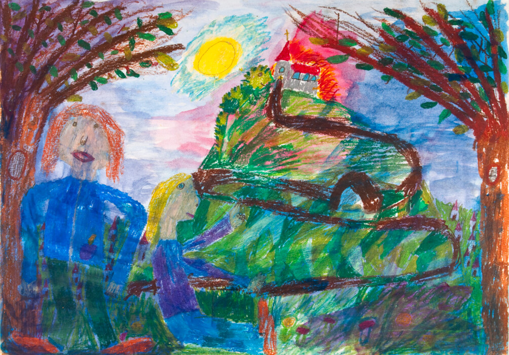 Mischtechnik: Ölpastellkreiden und farbige Tinte