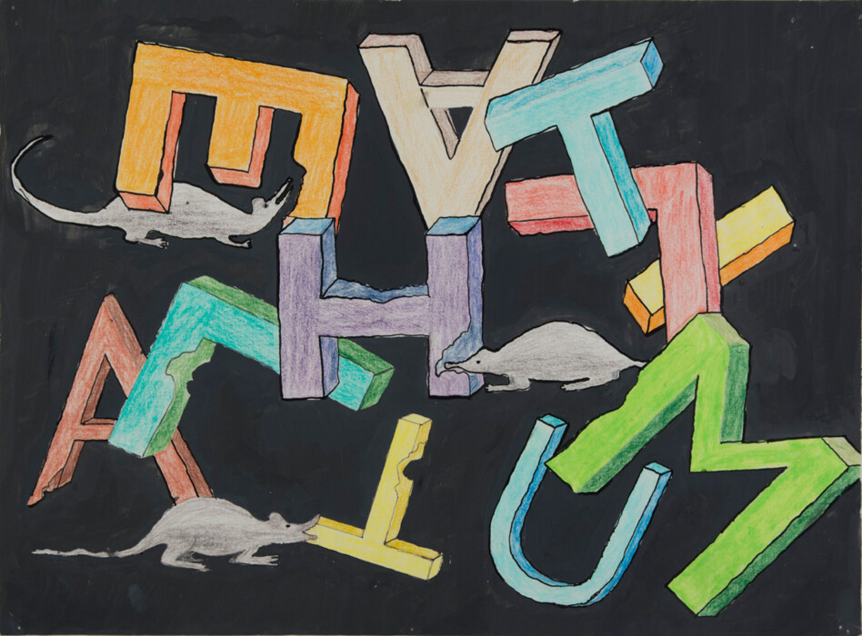 Schrift mit Malerei, Farbkreiden, Farbstiften