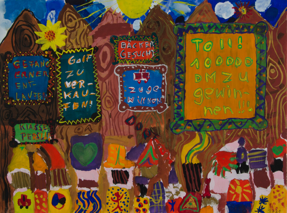 Schrift mit Malerei, Farbkreiden, Farbstiften