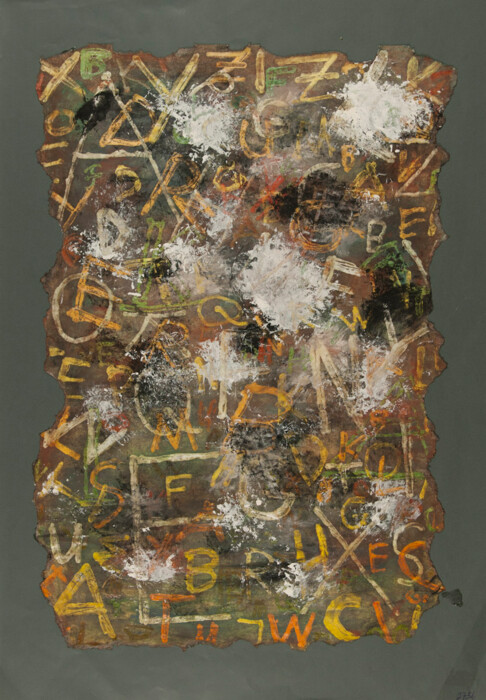 Schrift mit Malerei, Farbkreiden, Farbstiften