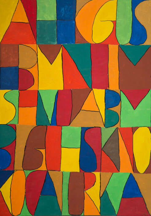 Schrift mit Malerei, Farbkreiden, Farbstiften
