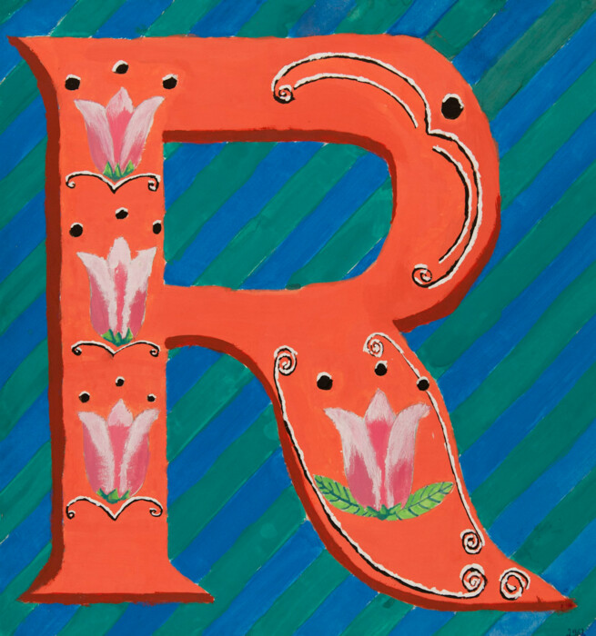 Schrift mit Malerei, Farbkreiden, Farbstiften