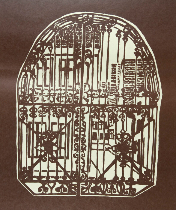 Dezember: Schmiedeeisernes Tor am Hauptportal des Deutschhofes zwischen 1945 und 1940