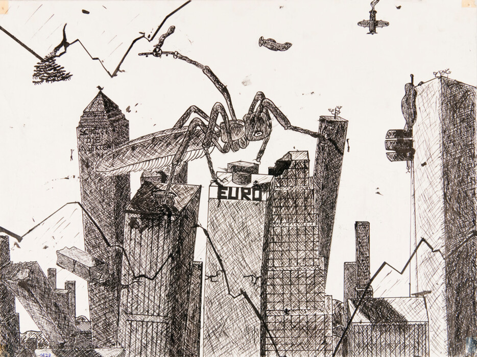 Tusche- und einfarbige Filz- und Holzstiftzeichnungen