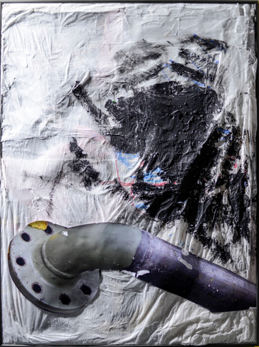 Den Schülern wurde eine Serie von Fotografien vom eigenen Schulumbau gezeigt. Ein prägnantes Merkmal wurde mit der Schere ausgeschnitten. Das verbleibende Fototeil wurde mit Seidenpapier beklebt und mit weißem Paraffinwachs überzogen. Anschließend wurde das ausgeschnittene Fototeil wieder eingefügt und aufgeklebt und Spuren mit schwarzer Acrylfarbe hinzugefügt.