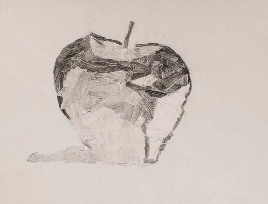 Collage aus gerissenenem Papier mit Bleistiftzeichnung