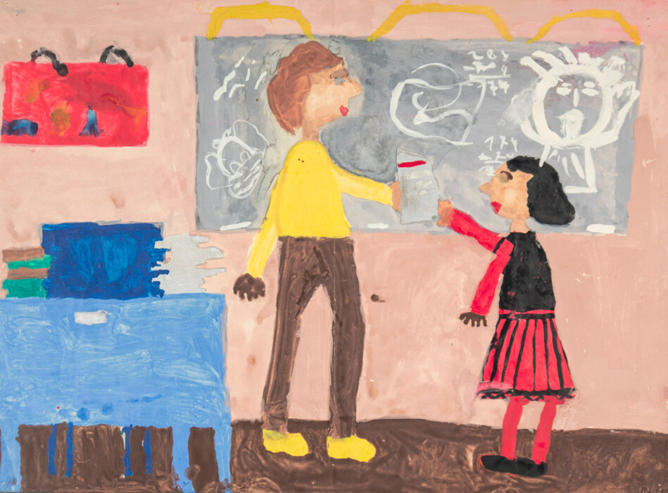 Schüler und Lehrer an der Tafel