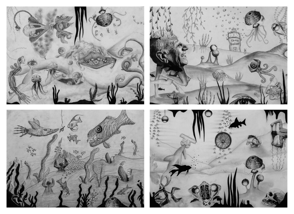 Kombinatorik und Verfremdung (Collage mit zeichnerischer Fortführung)
