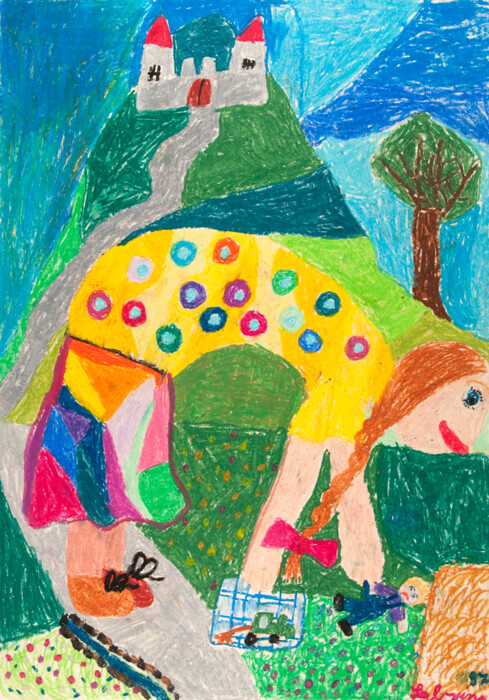 Das Riesenmädchen findet eine lebendige Bauern-Puppe