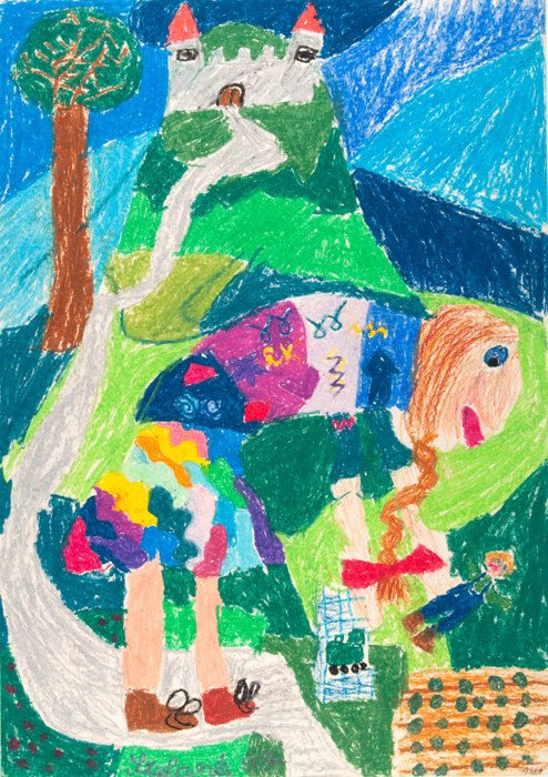 Das Riesenmädchen findet eine lebendige Bauern-Puppe