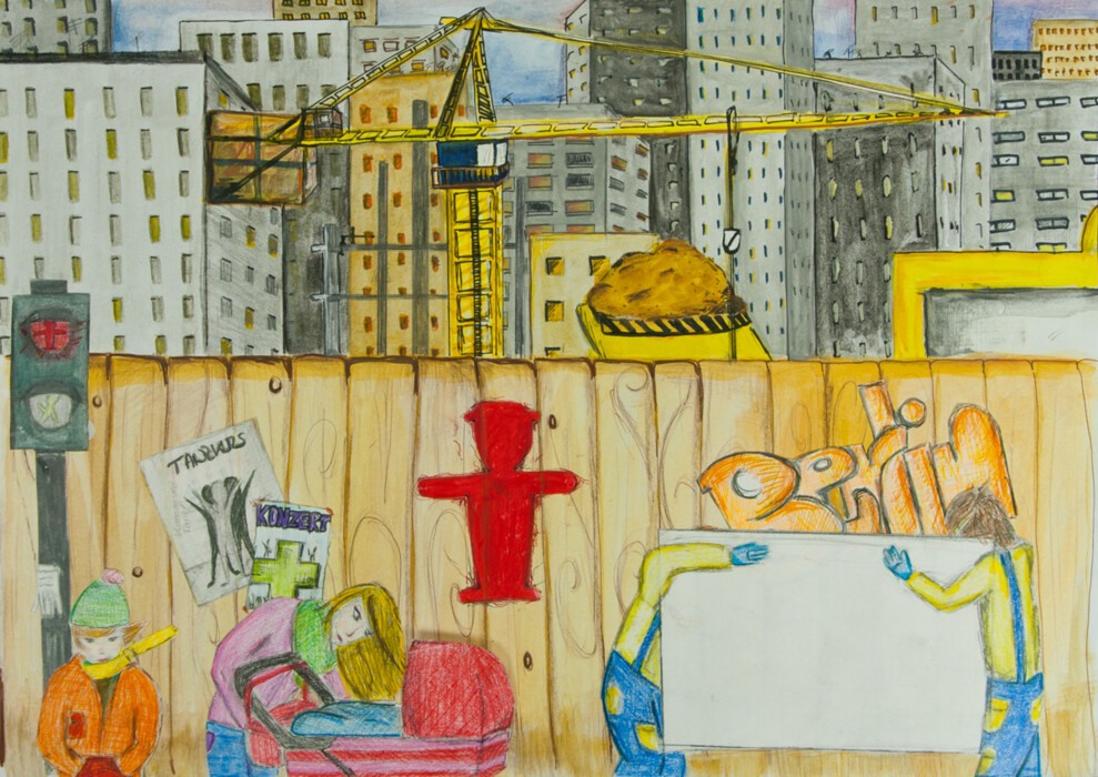 Mischtechnik: Bleistift, Buntstift, Aquarell