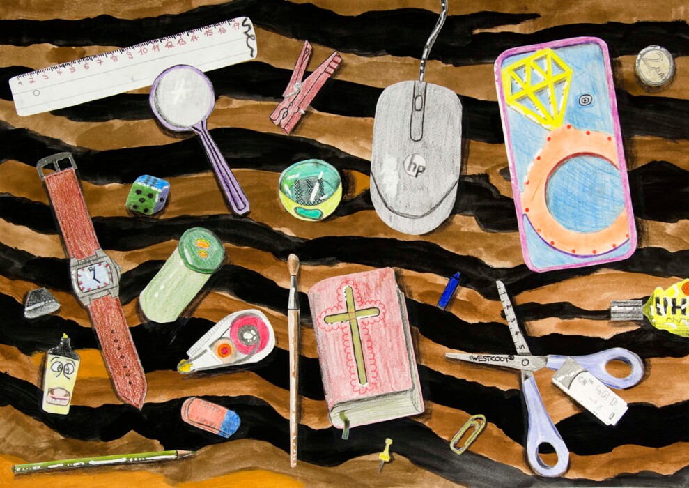 Aufgabenstellung/Unterrichtsverlauf: Die über einen längeren Zeitraum bestehende Aufgabe zielt auf die gestalterische Auseinandersetzung mit der Wirklichkeit - hier mit Objekten des Alltags in Form, Oberfläche und Farbe.Dabei ist die Beschäftigung mit den eigenen kleinen Dingen des Alltags für die Schüler/-innen durchaus motivierend.Nach Übungen zur Darstellung von Plastizität und Stofflichkeit mit grafischen und malerischen Mitteln (Licht und Schatten, Farbe als Gegenstandsfarbe) ergab sich die Beschäftigung mit kunsthistorischen und aktuellen Beispielen (Stillleben als Motiv von der Antike bis heute).Die Möglichkeiten und insbesondere die Wirkungen unterschiedlicher Bildordnungen wurden parallel erprobt und wiederholt und konnten - dem Thema entsprechend - zunächst spielerisch und auch gezielt durch Verschieben der Bildelemente eingesetzt werden.Die Stillleben-Objekte – ob real oder gemalt - werden erst zum Abschluss fixiert.Eine interessante Möglichkeit zur Weiterführung bietet – vor der Fixierung der Bildelemente – die Erarbeitung eines einfachen Stop-Motion-Trickfilms, bei dem die einzelnen Stillleben-Gegenstände in Bewegung versetzt werden und so ein skurriles Eigenleben entwickeln.Hinweise: Da die Aufgabe über einen längeren Zeitraum bearbeitet wird, ist es wichtig, die Schüler/-innen immer wieder neu zu motivieren.Dies kann erfolgen durch:Bildbetrachtungen, Farbentreff-Spiele, Demonstrationen von zeichen- und maltechnischen Möglichkeiten (Übergänge, Schatten etc.) usw.Bezug zur Kunst und/oder ästhetischen Umwelt: Auseinandersetzung mit der Alltagswirklichkeit