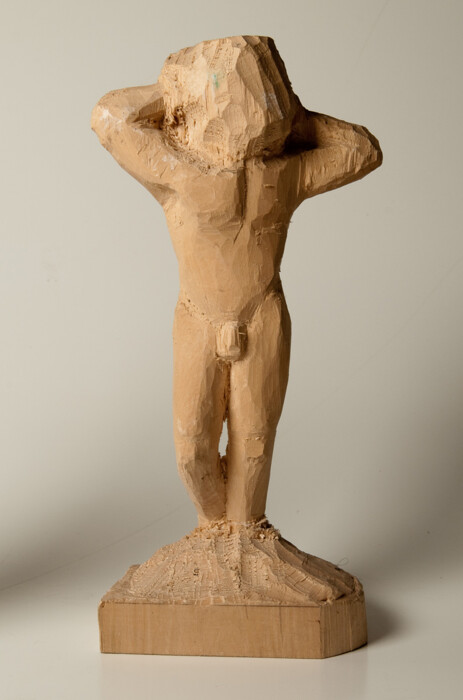 Mann von vorne mit hinter dem Kopf verschränkten Armen