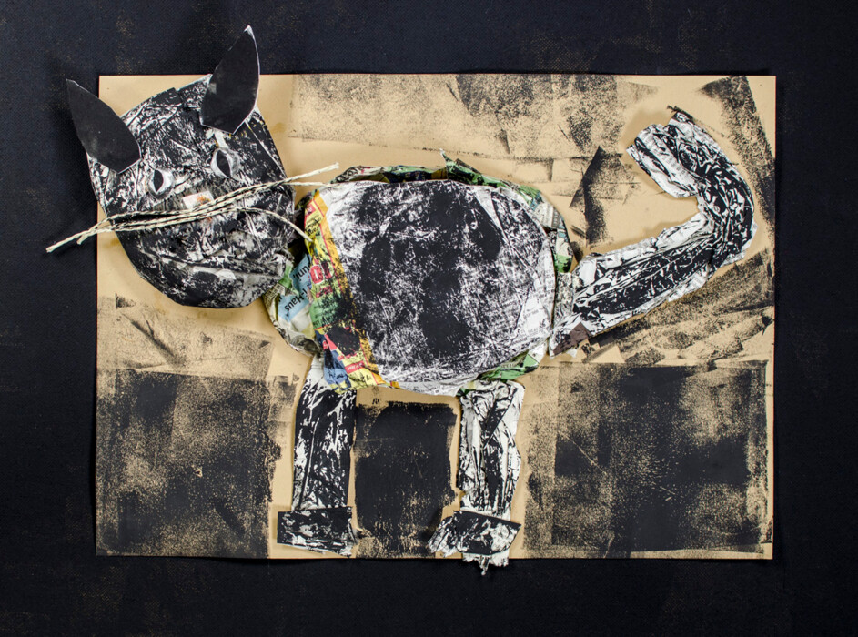 Collage aus Zeitungspapier, Schnur