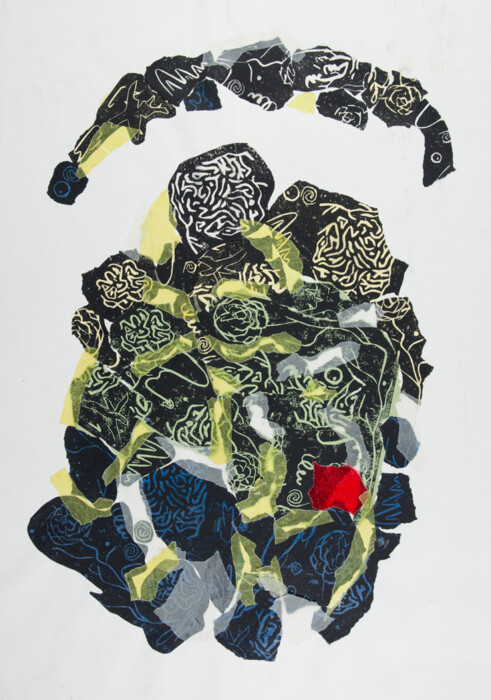 Collage aus bemaltem und bedrucktem Transparentpapier
