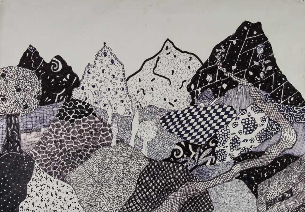 Tusche- und einfarbige Filz- und Holzstiftzeichnungen