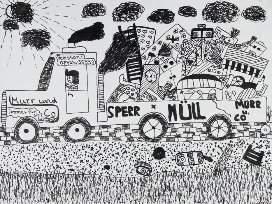 Tusche- und einfarbige Filz- und Holzstiftzeichnungen