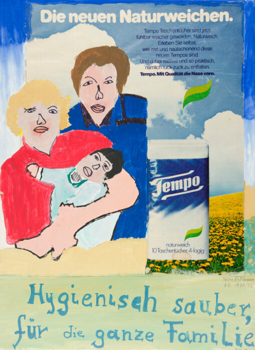 Bunte Collage: Bild und Schrift