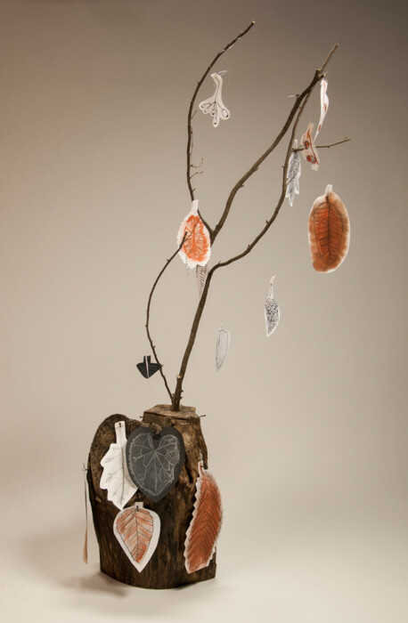 Kombination aus Natur (Holzklotz - Ast) und Zeichnung