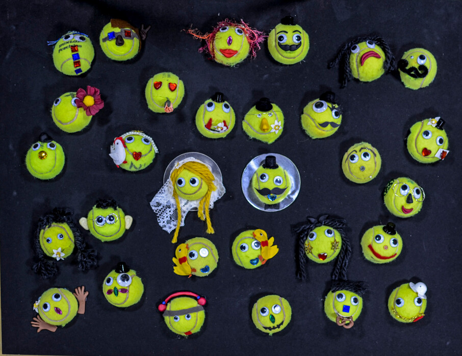 Gesichter aus Tennisbällen