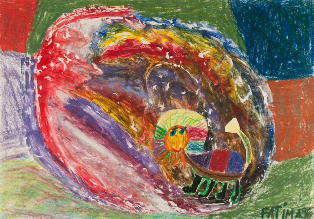 Ölpastellkreide, Collage mit Monotypie