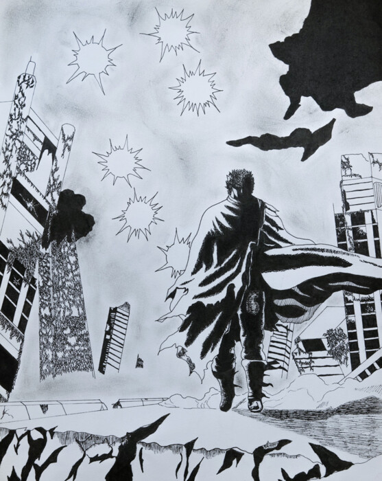 Kohle-, Fineliner-, Filzstift-Zeichnung