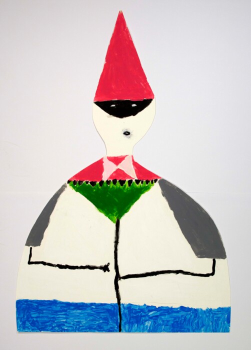 Überlebensgroße Figuren auf Pappe mit Acryl (zweidimensional). Übertragung auf Holzfundstücke (dreidimensional)