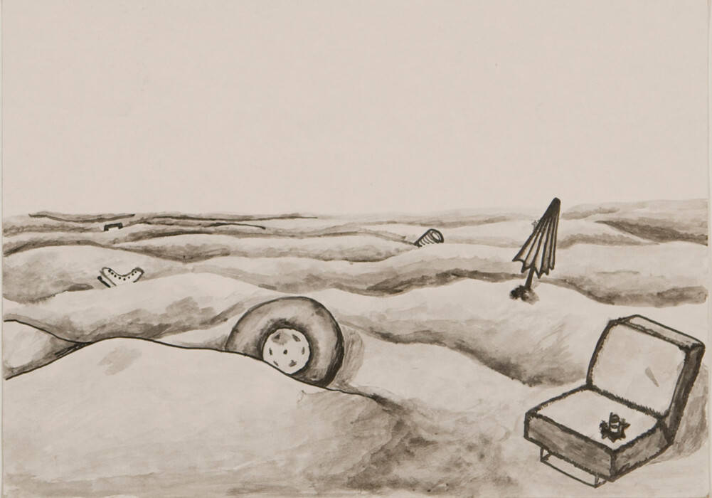 Surreale Landschaft mit Koffer