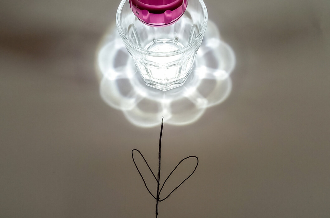 Suche einen interessanten Gegenstand. Baue eine Lampe auf und lasse den Gegenstand einen Schatten werfen. Hänge ein weißes Papier an die Wand und zeichne einen neuen Zusammen-hang.