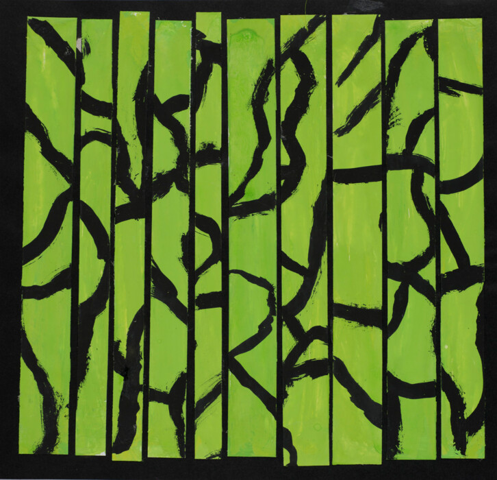 Collage aus in Streifen geschnittenem, gemaltem Bild
