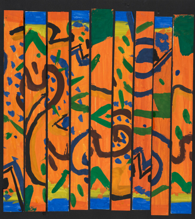 Collage aus in Streifen geschnittenem, gemaltem Bild