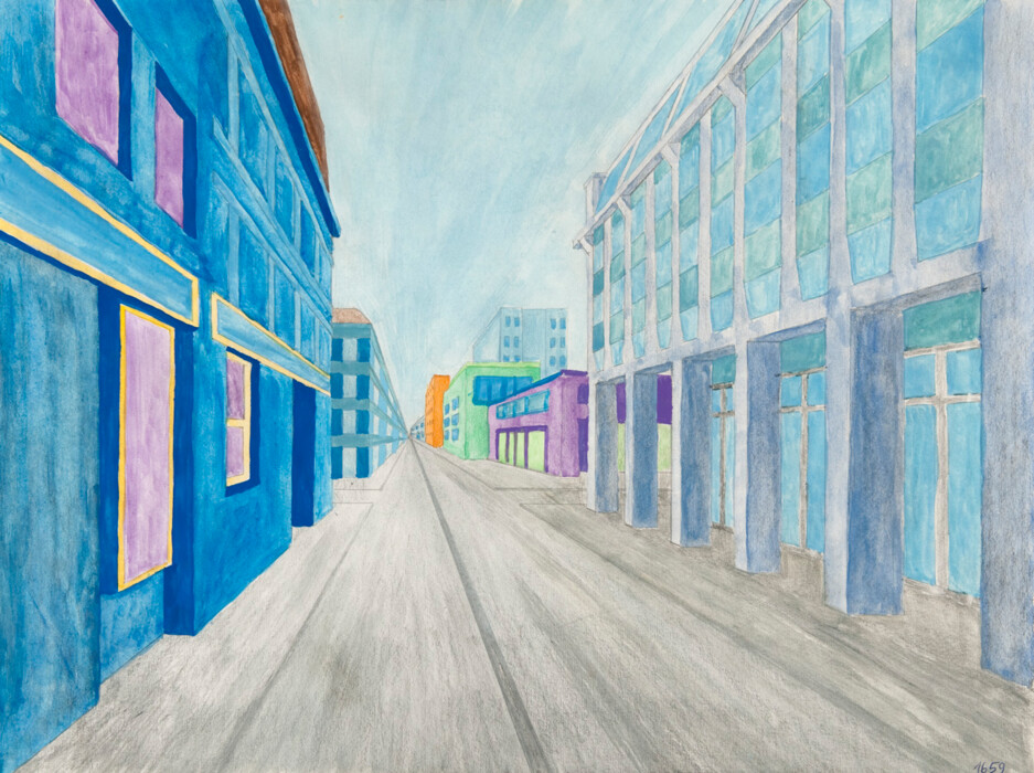 Bleistiftzeichnung mit Lineal, Deckfarben