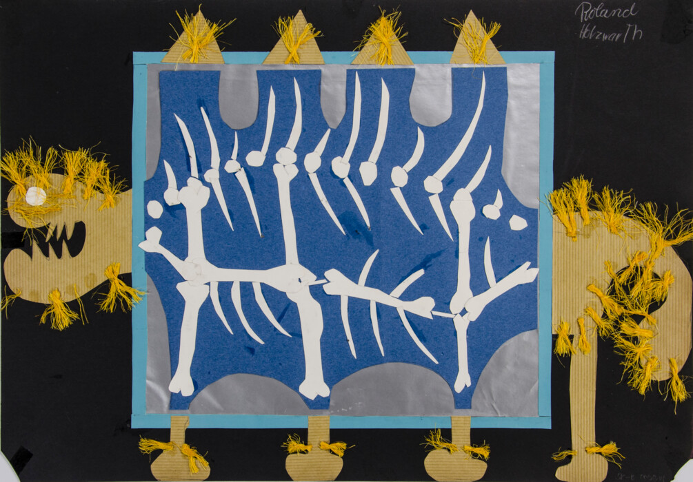 Materialcollage: Tonpapier, Silberpapier, Schnur