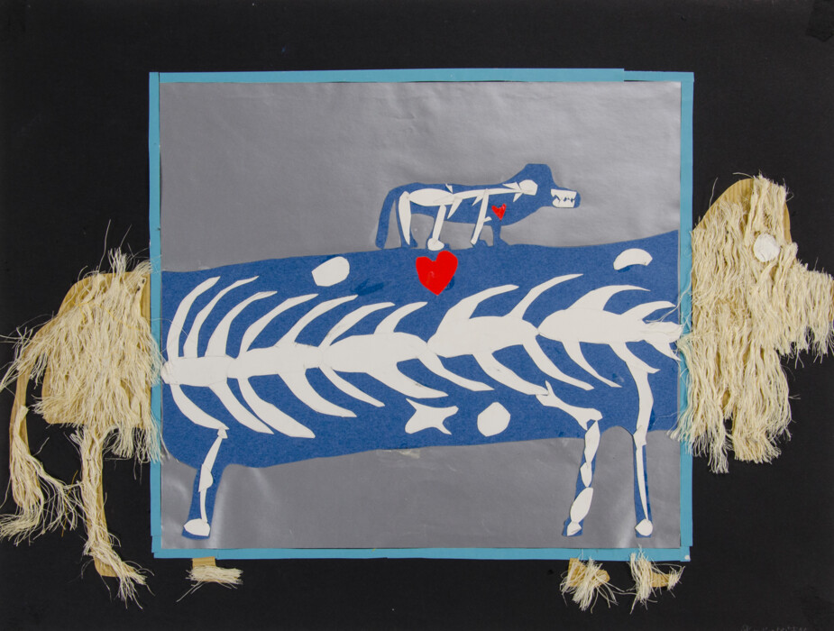 Materialcollage: Tonpapier, Silberpapier, Schnur