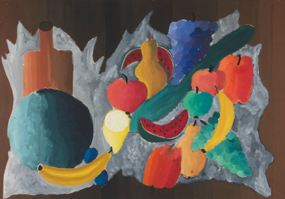 Stillleben mit Gefäßen und Obst