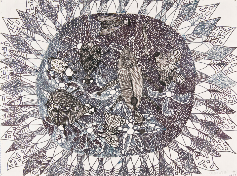 Tusche- und einfarbige Filz- und Holzstiftzeichnungen