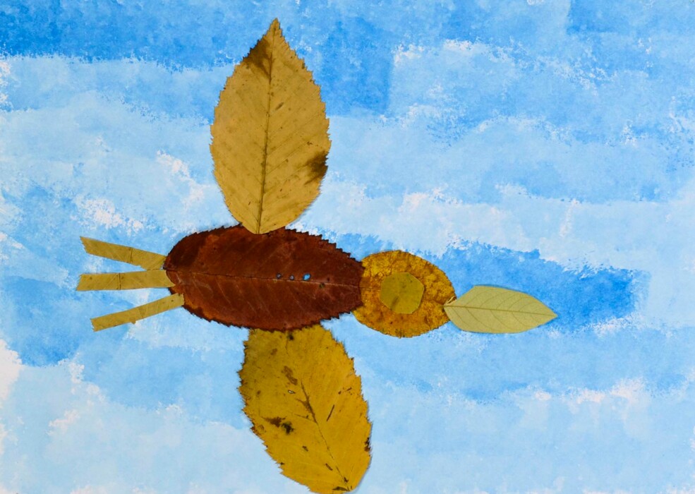 Anregungen: Den Fantasievogel erst auf weißes Papier kleben lassen, anschließend ausschneiden und erst dann auf den gestalteten Hintergrund kleben