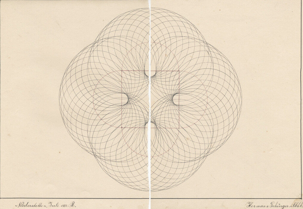 Tuschezeichnung mit Zirkel und Lineal