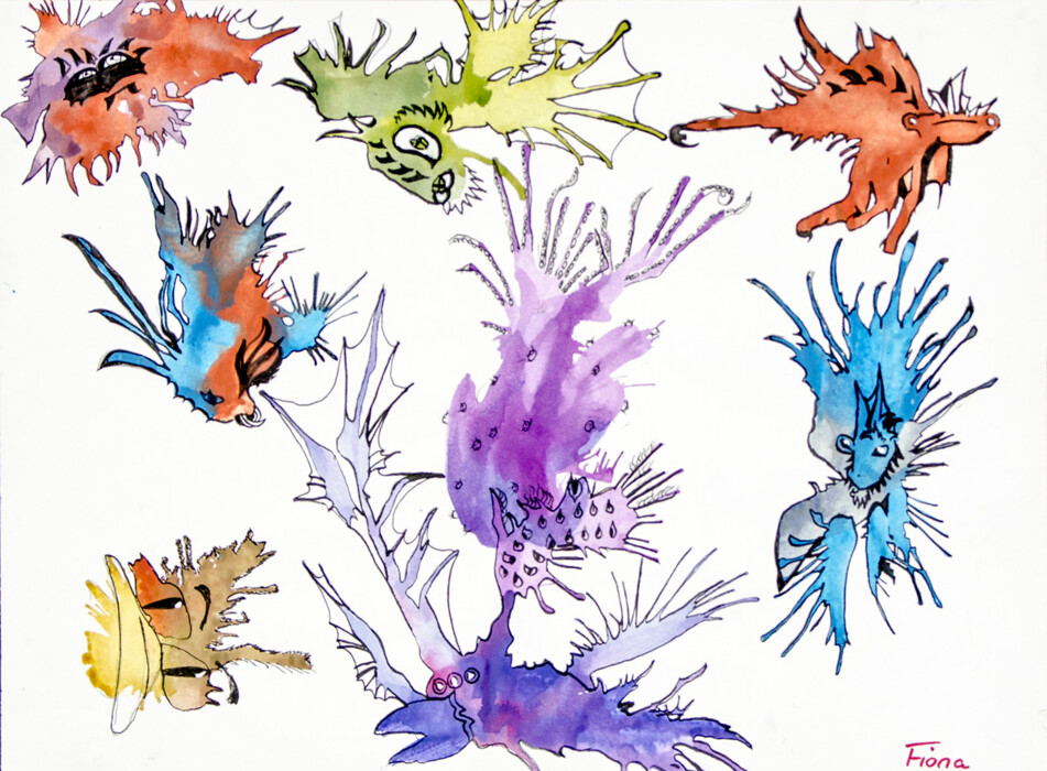 Papier, Wasserfarben, schwarze Tusche