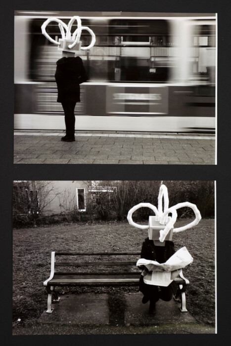Ein weiterer Arbeitsauftrag bestand darin, die Maske mit einem großen Selbstverständnis zu tragen und sich damit in alltäglichen Situationen abzulichten.