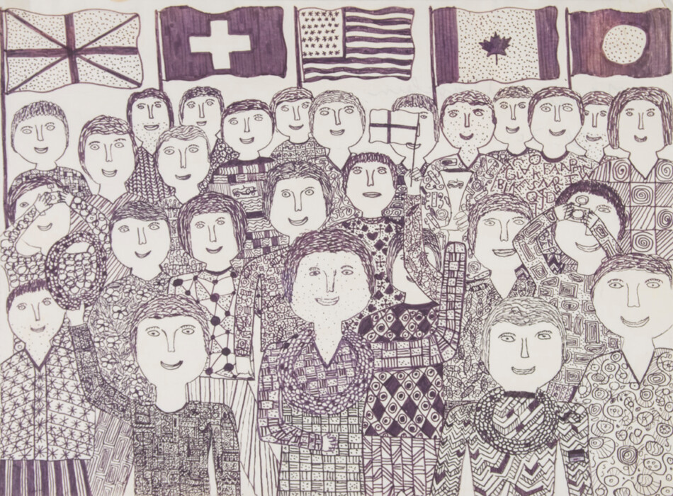 Tusche- und einfarbige Filz- und Holzstiftzeichnungen