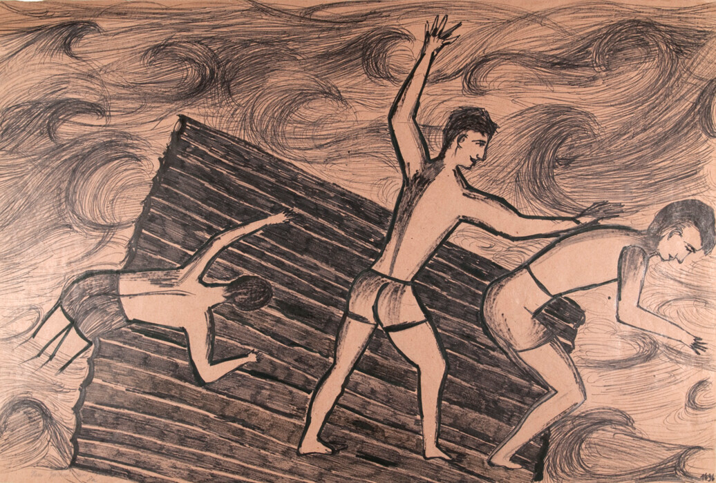 Tusche- und einfarbige Filz- und Holzstiftzeichnungen