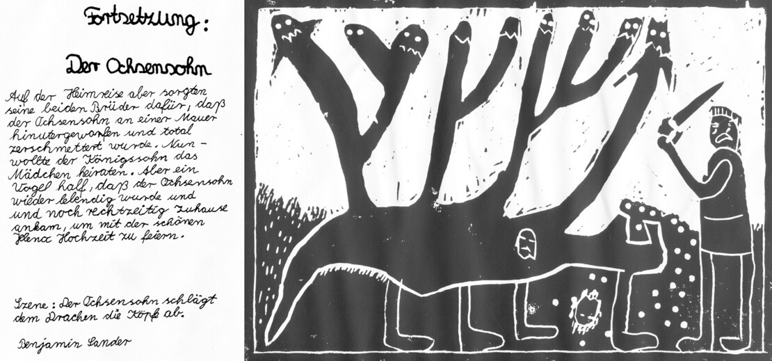 Szene: Der Ochsensohn schlägt dem Drachen die Köpfe ab