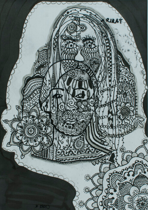 Bleistift- und Tuschezeichnung auf Fotokopie
