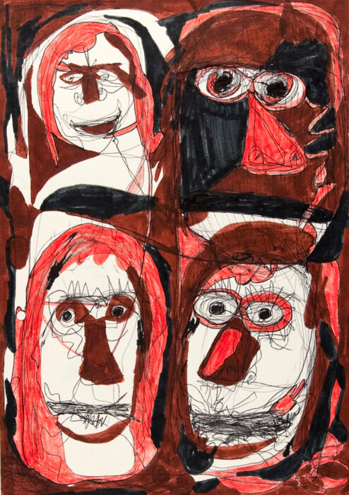 Deckfarben und Kugelschreiber