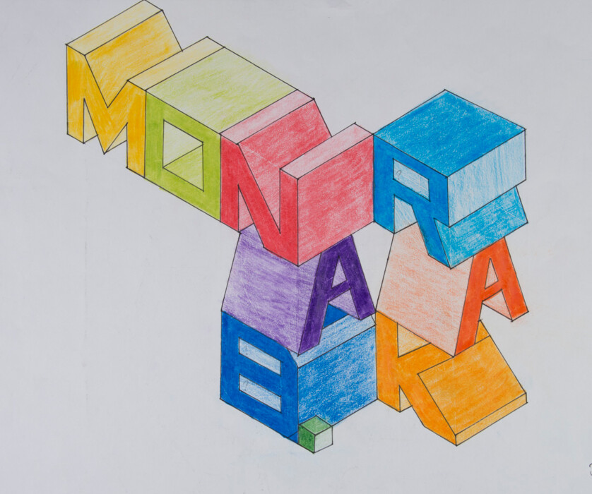 Schrift mit Malerei, Farbkreiden, Farbstiften